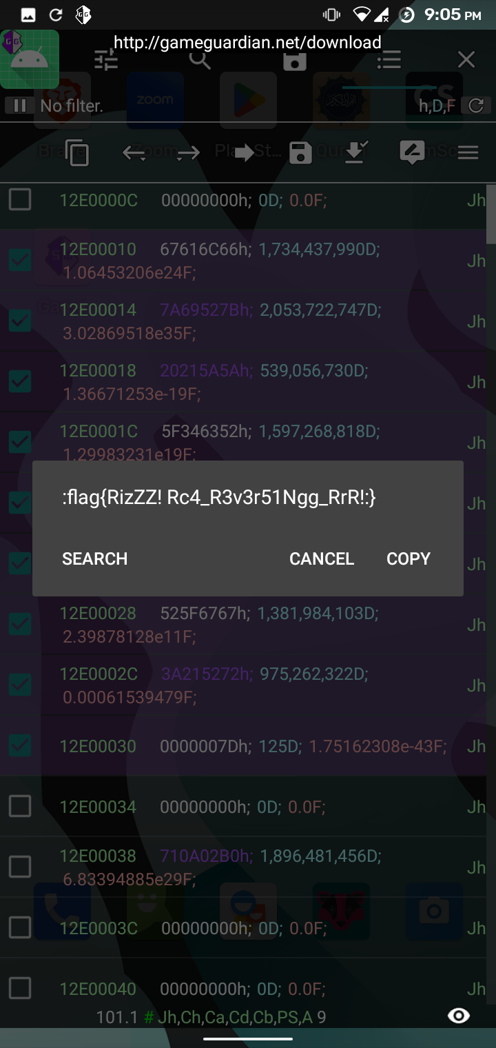This app only shows toast when the user password combination is wrong and only calculates the flag upon entering the correct credentials. We can just take the whole code and write our own solution that will print the flag.