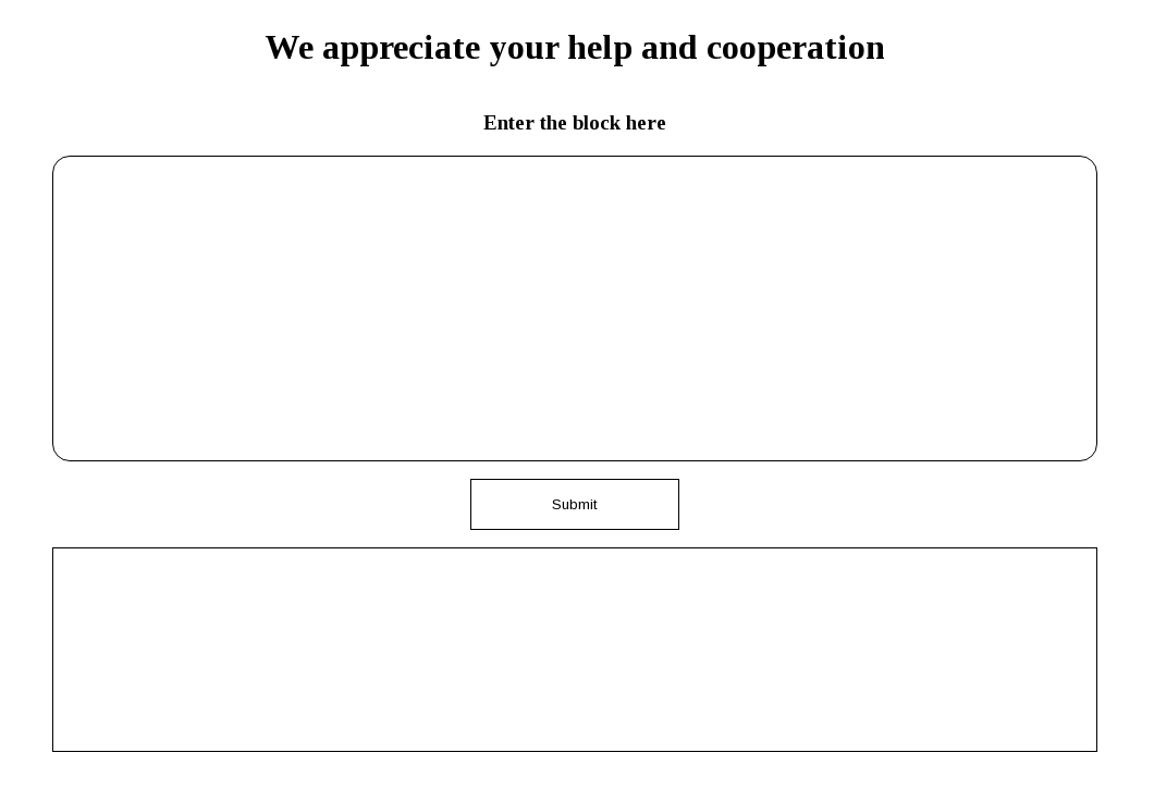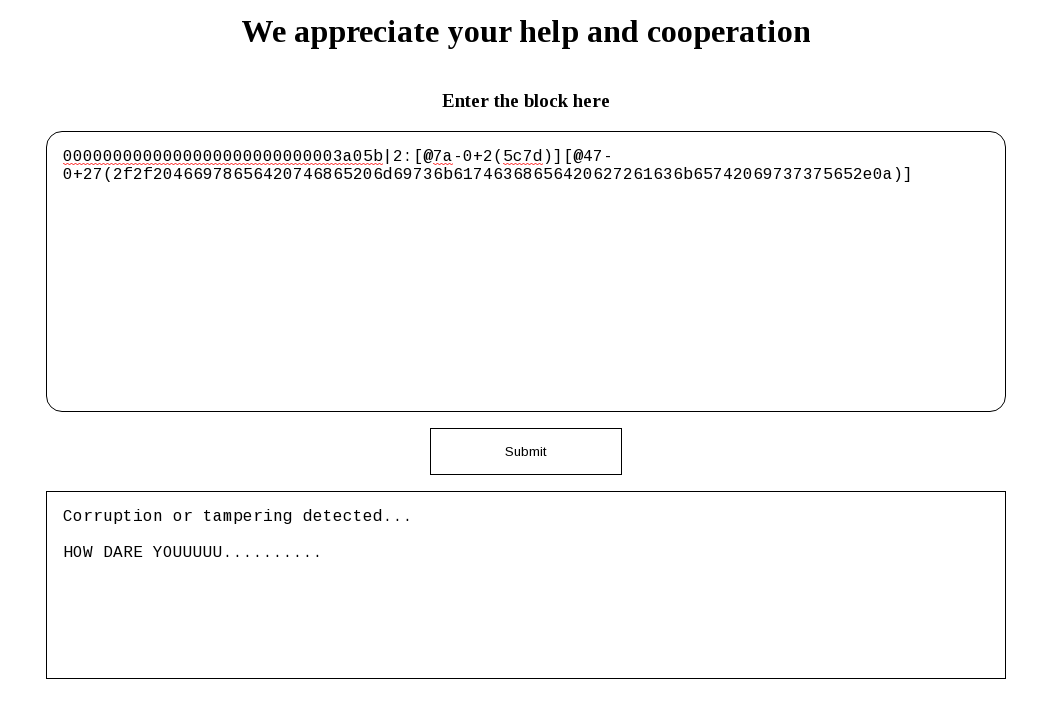 As we can see, we were given a portal so that we can submit the block that was lost. We were also given the lost block. This is the output when we submit the lost block.